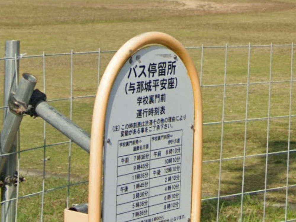 ()内も含めて、国土交通省データ、Navitime、GoogleMapsに登録されています。沖縄県では長い方のバス停名です。漢字等で21文字、よみで30文字です。バス停標の名前が見えないのが残念です…。 GoogleStreetView |
