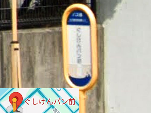 全国的に珍しい、ピザ屋さんの名前のバス停です。 GoogleStreetView |