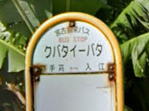 沖縄らしい名前と言えそうですが、由来は分かりませんでした…。関連の有無は不明ですが、近くにはクバカ城跡という城趾があるそうです。このほか、宮古島で気になるカタカナ(混じり)地名は、「サデフネ」「ヤシキ原」「ツガ川」「アダン川」「マクゾク」「西(東)ツンマー」「ニカガリ」「シギラビーチ入口」「マティダ市民劇場前」「インギャーマリンガーデン前」。 GoogleStreetView |
