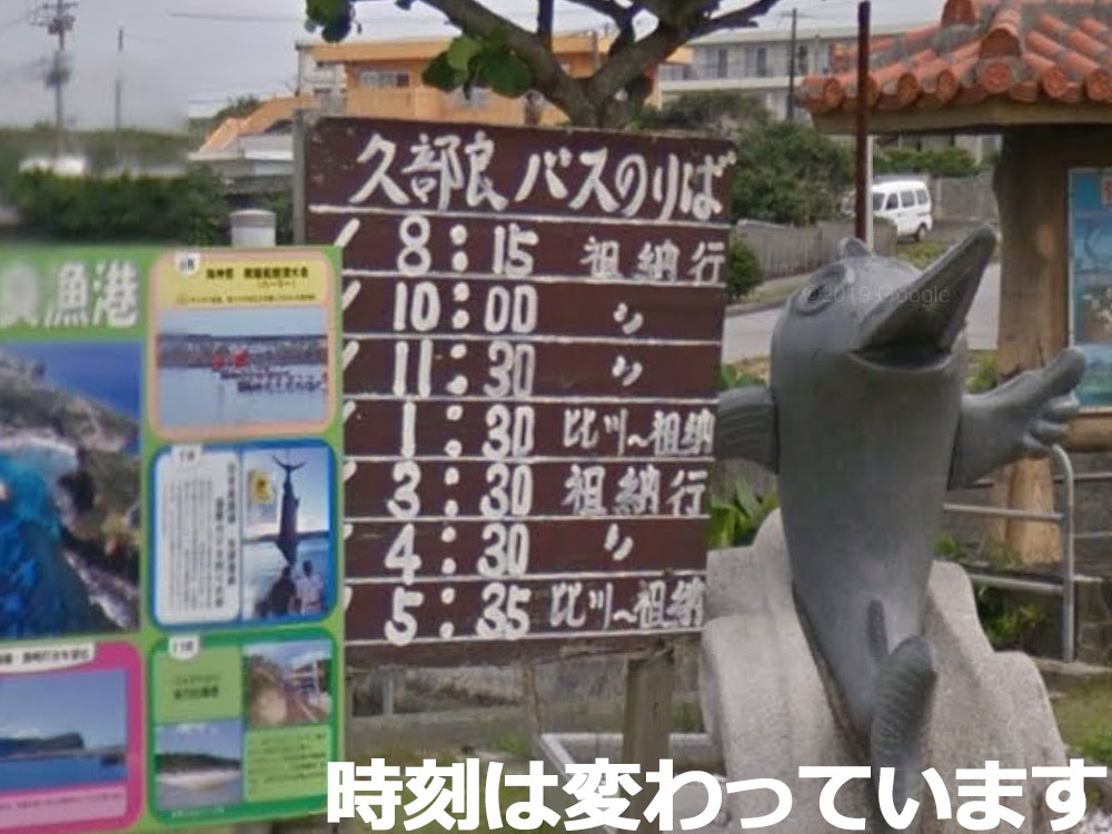 ()内も含めて、国土交通省データやGoogleMapsに登録されています(GoogleMapsでは閉業となっていますが…)。バス停標にバス停名が書かれていないのが残念です。沖縄県最長クラスのバス停名で、漢字等24文字、かな25文字です。青系のバス停と青空、青い海のハーモニーが素敵です。 GoogleStreetView |