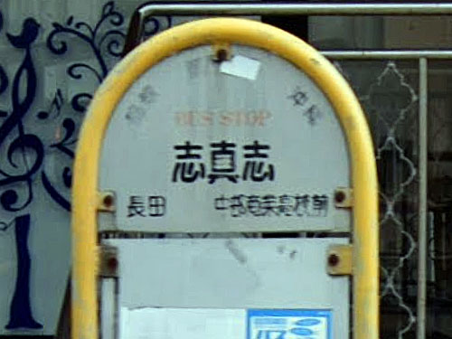 「山本山」形式のバス停です。「志」が前後につくこの形式のバス停はとてもレアです。また、他の都道府県には複数あるのに、なぜかこの形式のバス停は沖縄では1つしか見つかりませんでした。漢字で書いても、ひらがなで書いても回文になる名前です。公的住所になっています。また志真志川という川もあるそうです。志真志の名前の由来は分かりませんでした…。このバス停がある道は「宜野湾中古車街道」と呼ばれるそうです。 GoogleStreetView |